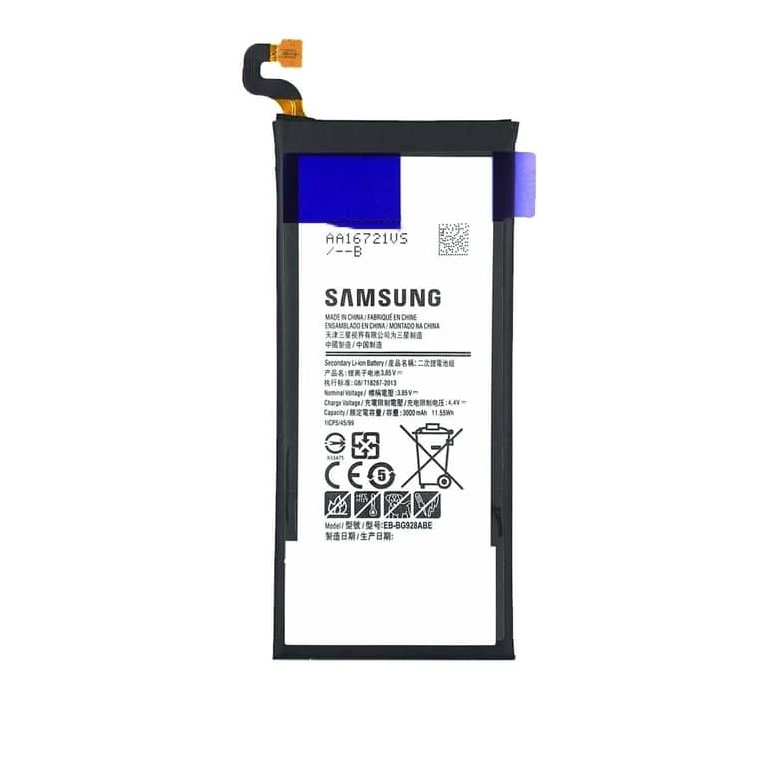 باتریGalaxy S6 Edge Plus از نوع داخلی است. برای تعویض آن باید گوشی باز شود. به همین دلیل استفاده از باتری با کیفیت بالا اهمیت زیادی دارد. باتریهای بیکیفیت ممکن است باعث داغ شدن گوشی شوند.
